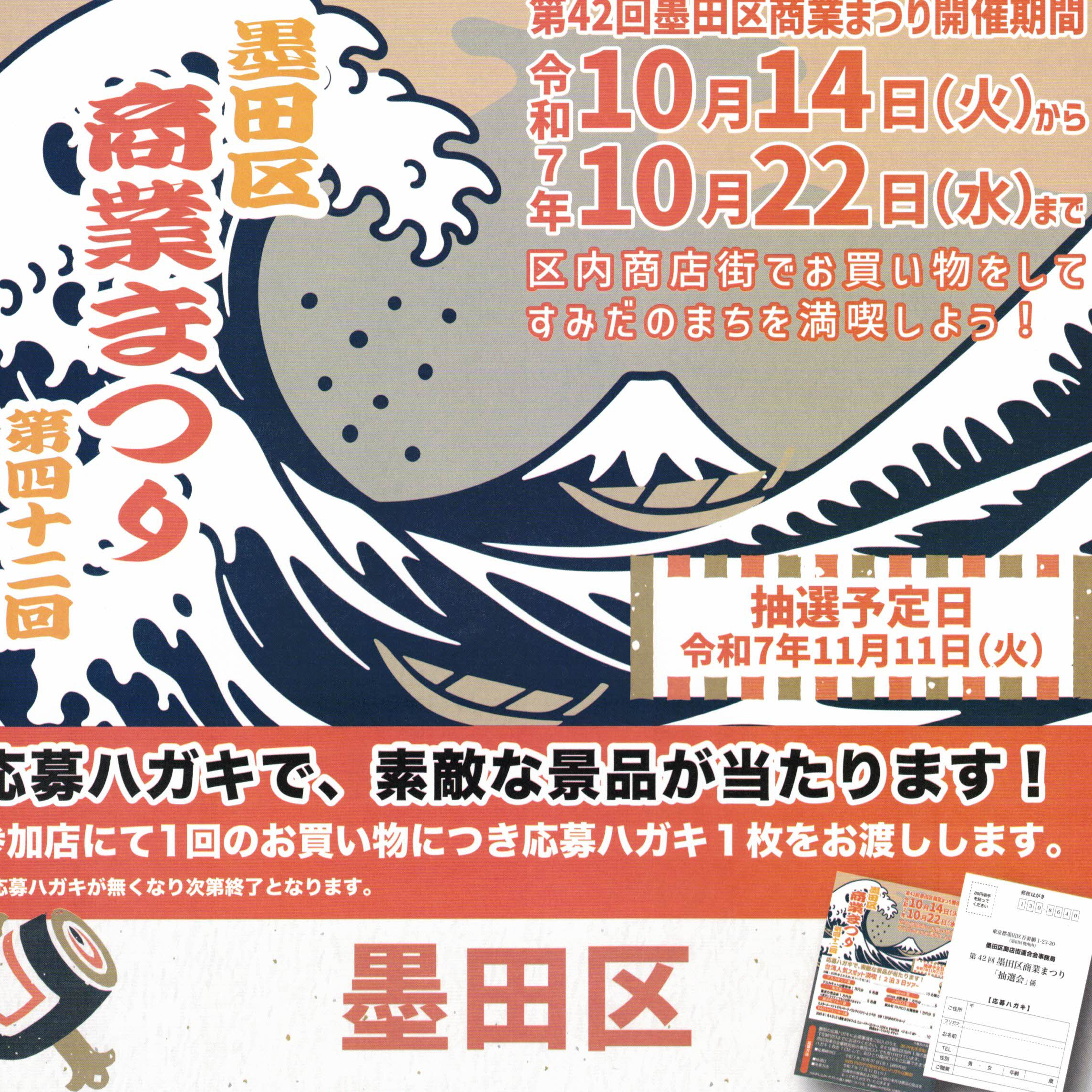 2025年10月14日(火)~10月22日(水)にご来店の皆様に、墨田区商業まつりの応募ハガキを配布いたします。 墨田区商業祭り景品 などが当たります。 なお当店の定休日・貸切日は、当店トップページのカレンダーをご覧くだ …